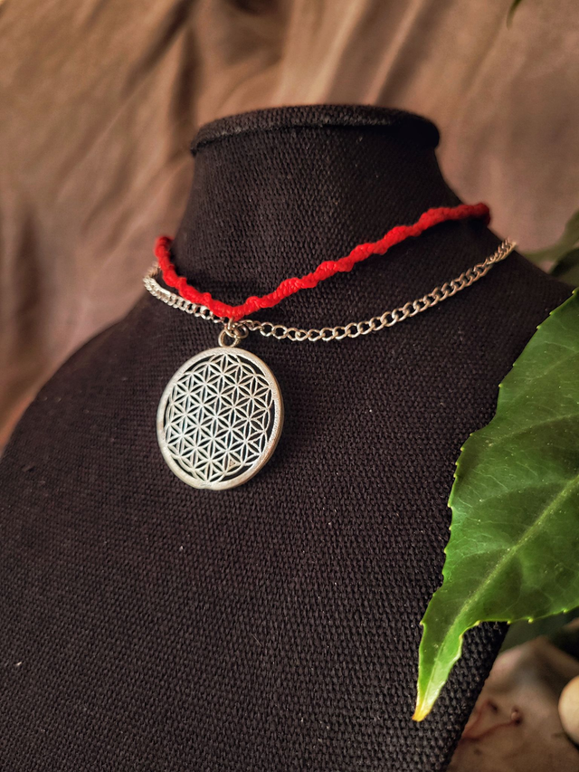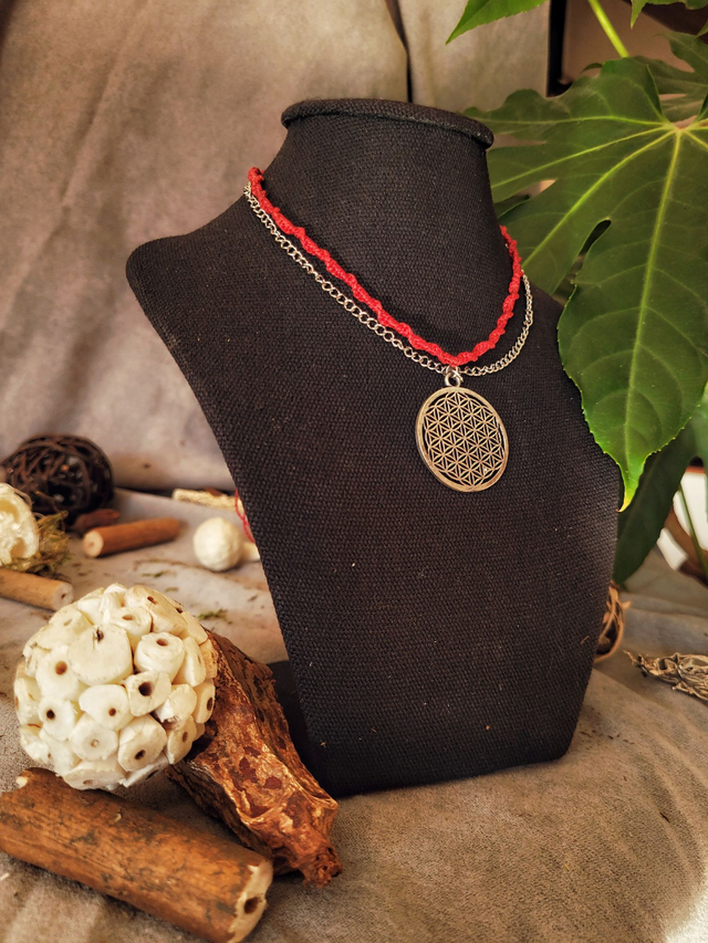 • Pendentif: fleur de vie en laiton plaqué argent.
