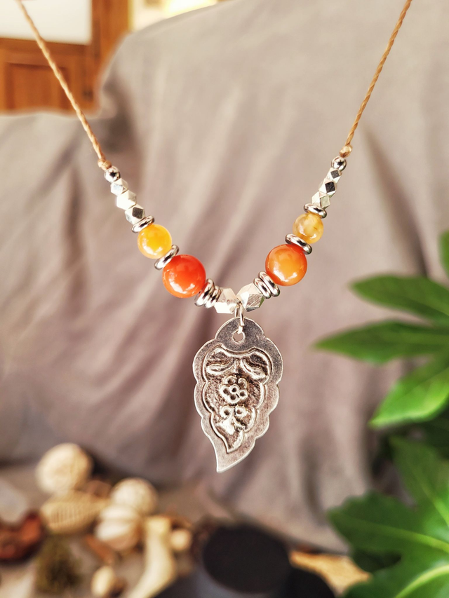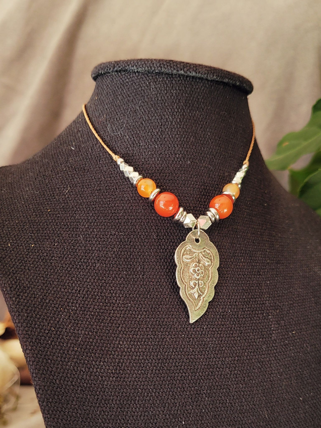 • Pendentif et perles métallique en acier inoxydable et plaqué argent. La feuille est issu de récupération de bijou chiné et nettoyer trouvé en brocante pour vous créer toujours plus de bijoux uniques.