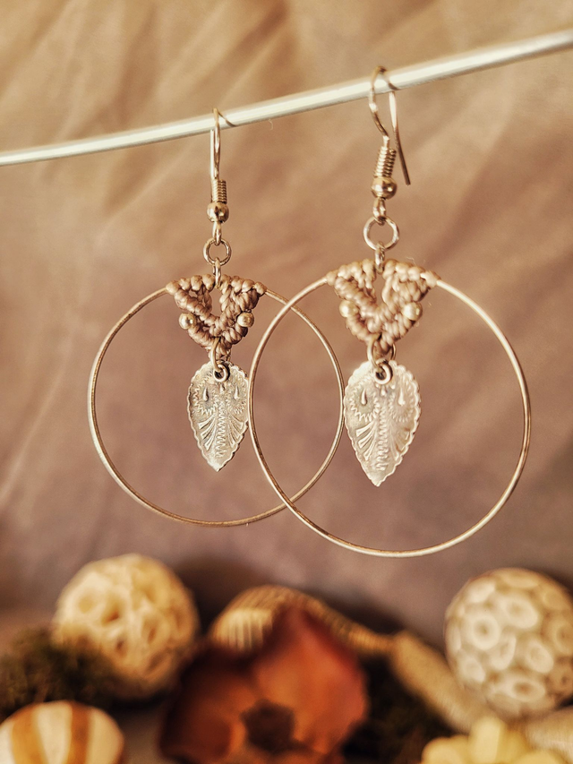 • Fermoir et rond en acier inoxydable, la feuille est en argent, je l'ai chiné dans une brocante.