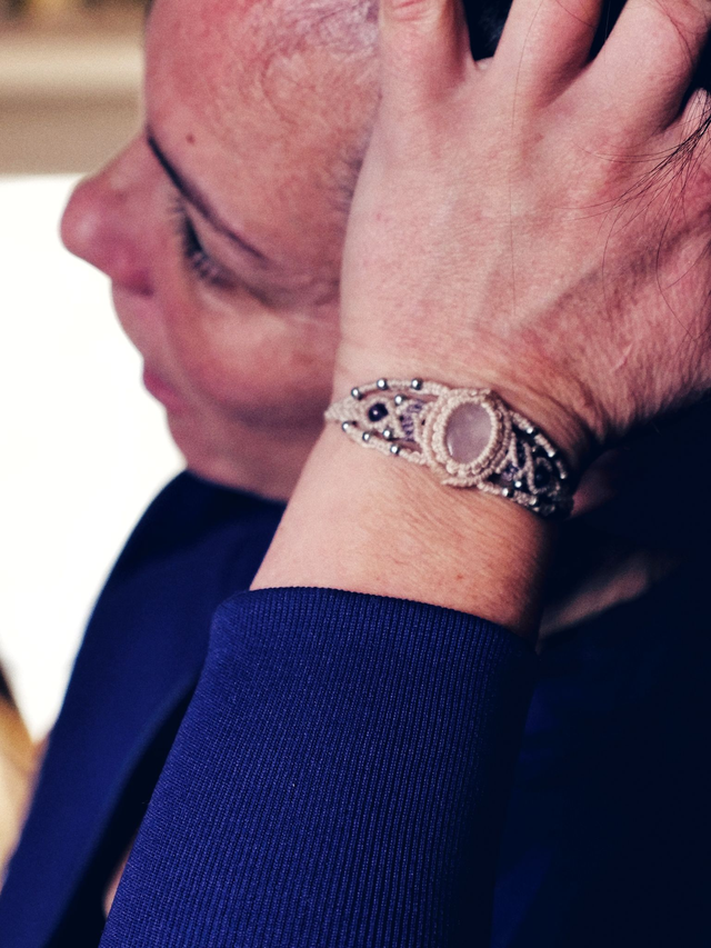 – Bracelet manchette en micro-macramé