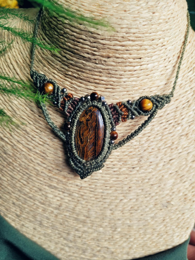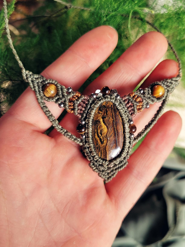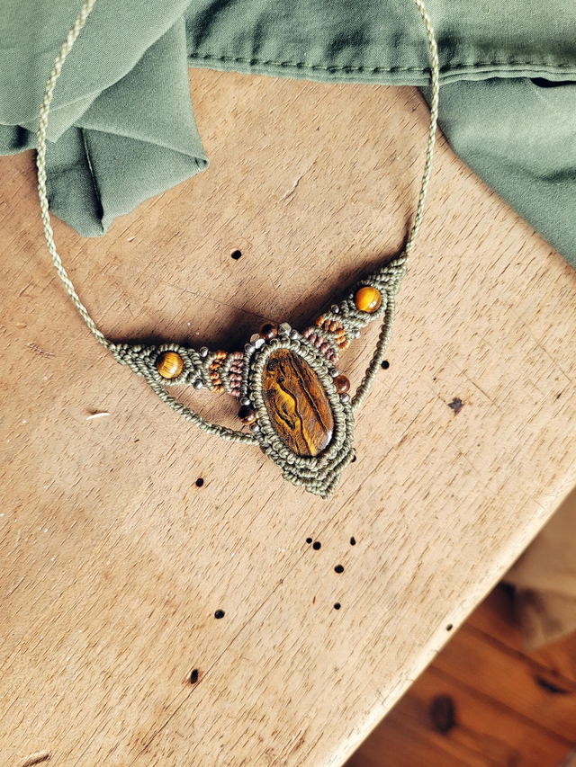• Perles: perles laiton, 2 oeil de tigre de 6mm et 3 oeil de tigre de 4mm.