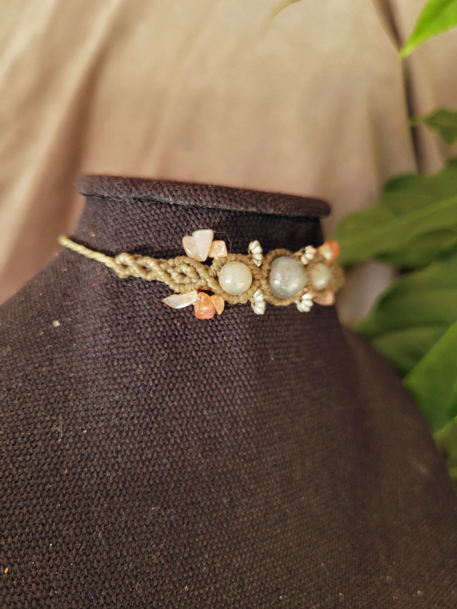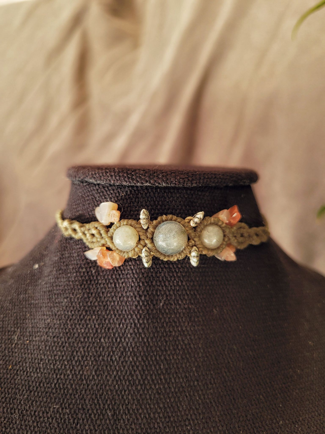 Ras de cou pierre de soleil, labradorite