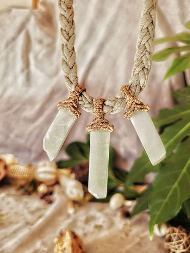 • Pierre: Aventurine, monté en pendentif en macramé par mes soins.